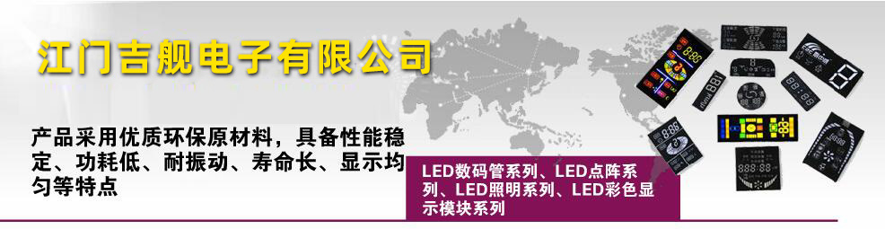 江門吉艦電子有限公司專業(yè)銷售LED數(shù)碼管、點(diǎn)陣 、彩屏等顯示器件、套件及LED照明電子元件。產(chǎn)品采用優(yōu)質(zhì)環(huán)保原材料,具備性能穩(wěn)定、功耗低、耐振動(dòng)、壽命長(zhǎng)、顯示均勻等特點(diǎn)。廣泛應(yīng)用于家用電器、LED顯示屏、電梯控制、儀器儀表等行業(yè)。江門吉艦電子有限公司憑借對(duì)光電行業(yè)豐富的系統(tǒng)經(jīng)驗(yàn),贏得了客戶的廣泛認(rèn)同和贊譽(yù),卓越的產(chǎn)品質(zhì)量、合理的價(jià)格深受客戶的好評(píng)。